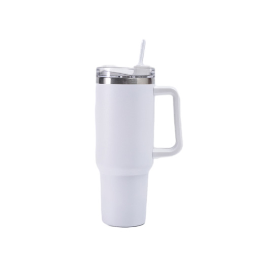 This 40 oz stainless steel tumbler comes with a handle & straw and features double-wall, vacuum insulation. The double-wall vacuum insulation keeps drinks hot or cold for hours, while the spill-resistant lid and reusable straw make sipping on the go effortless. Ideal for outdoor activities, workouts and daily hydration. PMS available for product color and imprint. Overseas production. Lower quantity available. Includes ocean freight delivered to NY.